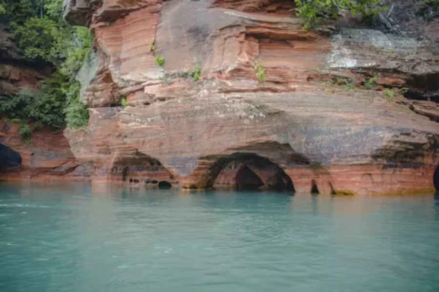 Lake Superior is the largest freshwater lake on earth by surface area, and its southern shore along Wisconsin's Bayfield Peninsula conceals one of the country's most dramatic hidden landscapes. Over thousands of years, lake waves have carved the Apostle Islands' sandstone cliffs into arching sea caves that glow amber and rust in afternoon light.