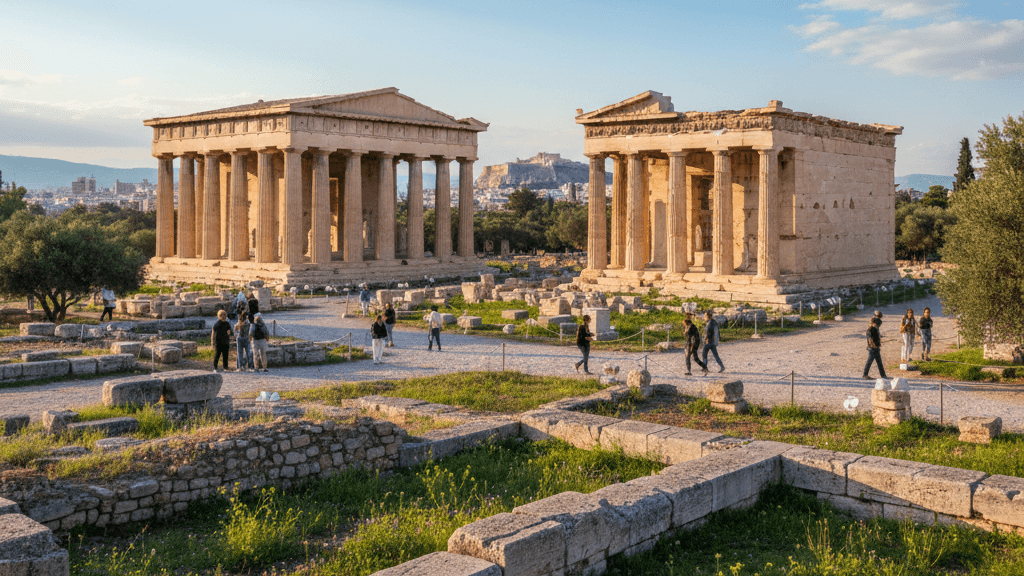 The heart of ancient Athens’ civic life, featuring the Temple of Hephaestus and the Stoa of Attalos