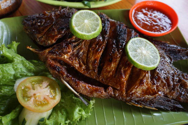 Whole fish such as red snapper, kingfish, tuna, or grouper are commonly used.