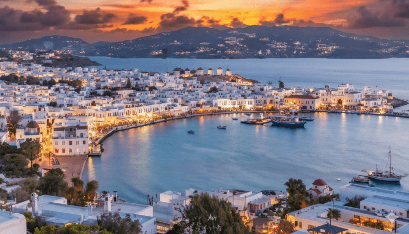 Mykonos is a Greek island, part of the Cyclades group, located between the islands of Tinos, Syros, Paros and Naxos. Mykonos is known for its vibrant nightlife and is a major tourist destination.