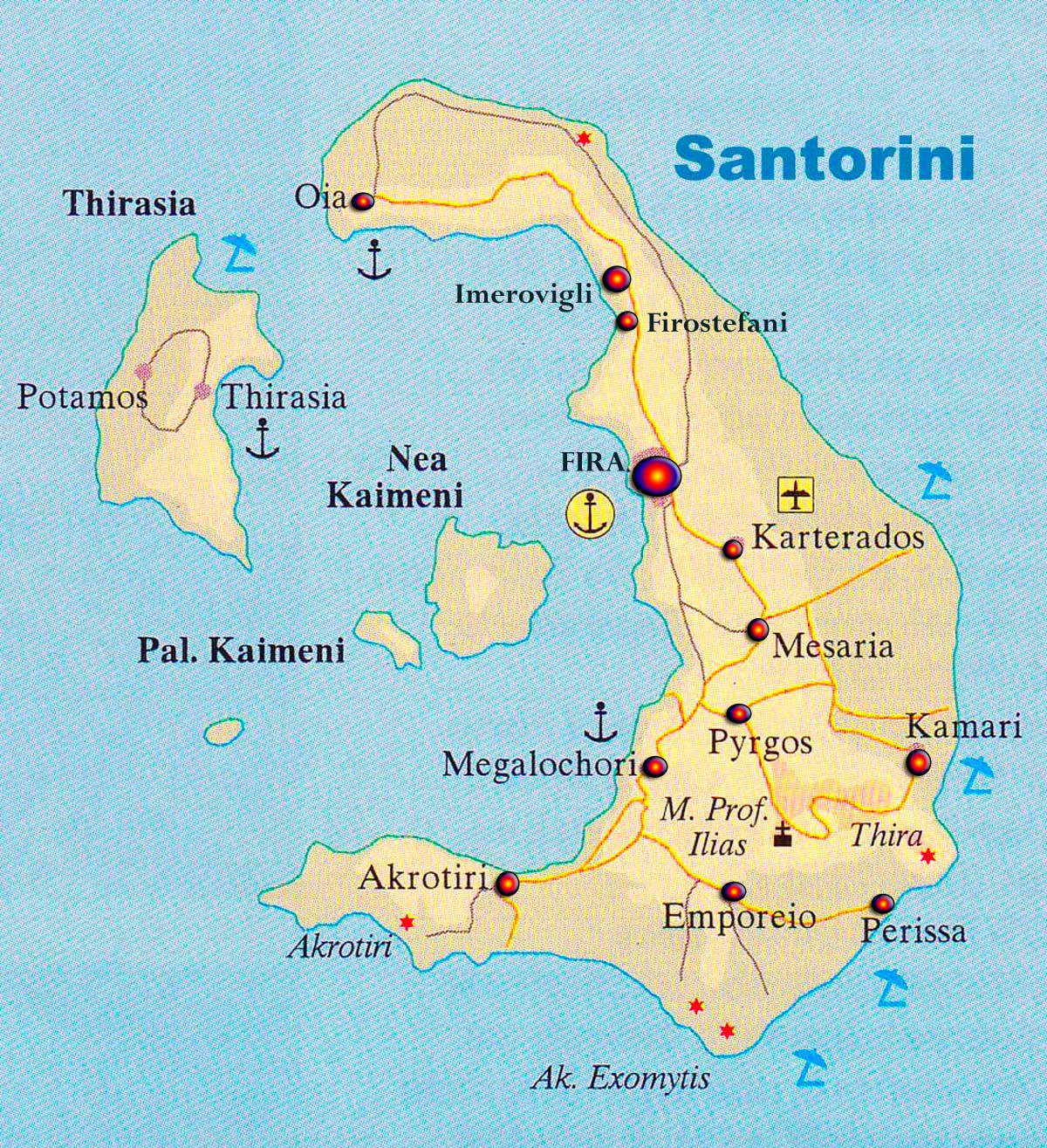 Santorini is an island in the Aegean Sea, southeast of mainland Greece. It's about 230 kilometers (140 miles) from Athens by air. While it's one of around 30 islands in the Cyclades group, Santorini is by far the most famous. It’s probably the most well-known island in Greece!